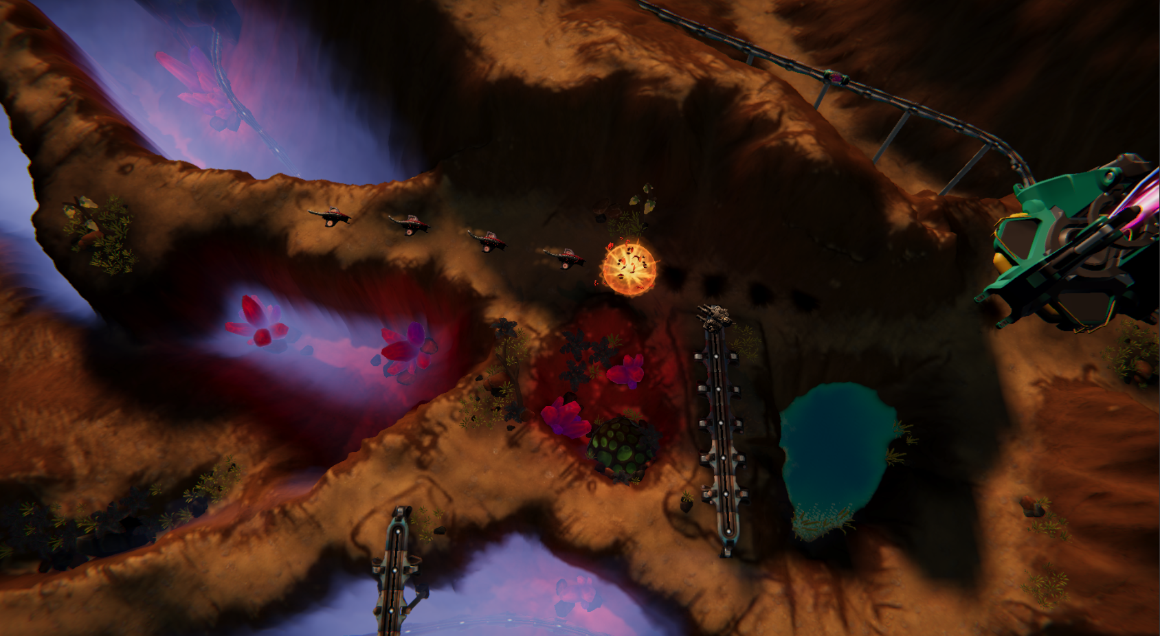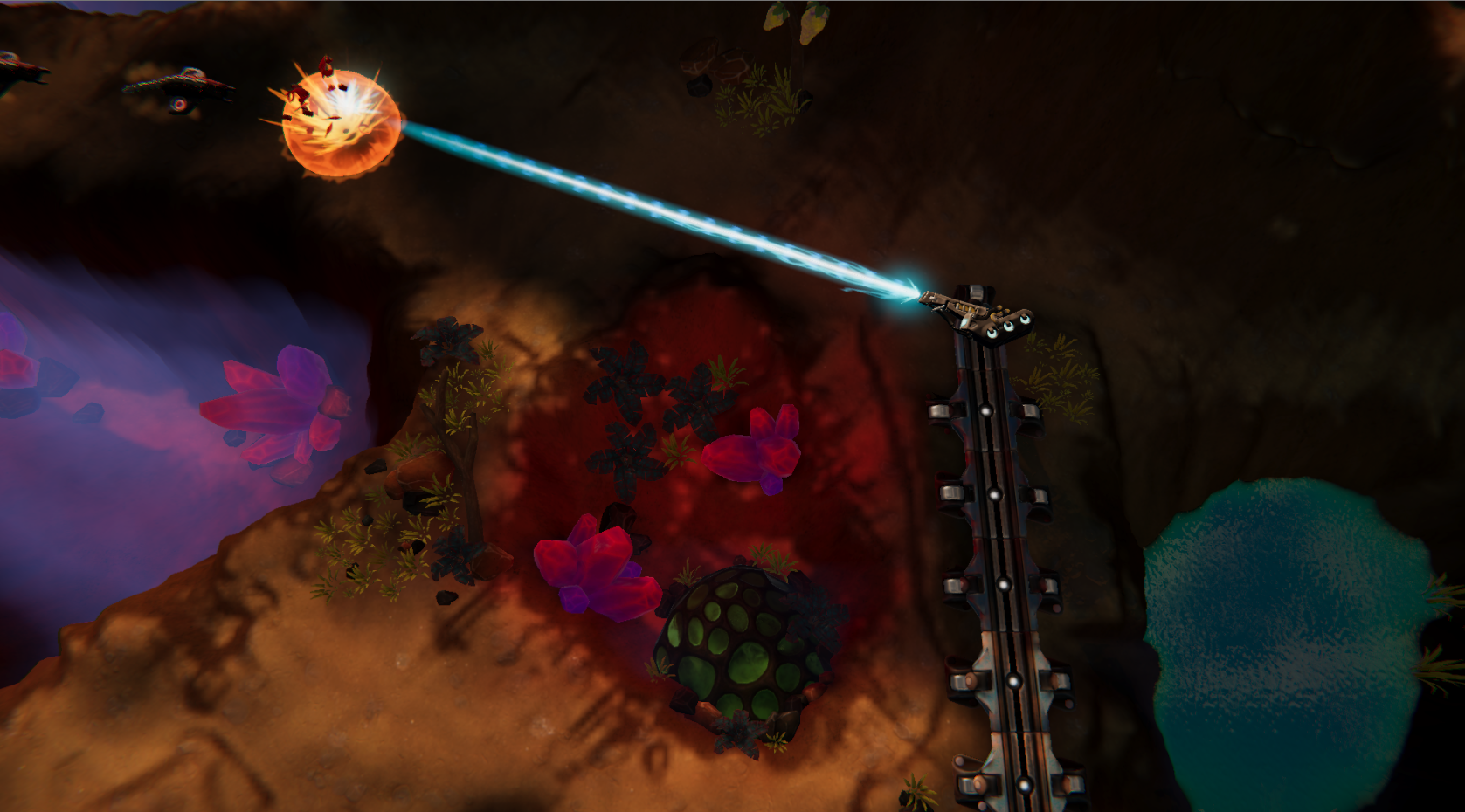 Three types of defence towers can be placed, upgraded and moved on rail systems in all levels. The player has to fight against three types of hostile aliens with different characteristics. All these features and mechanics require strategic decisions, resource management and should both challenge and motivate the players to win the fights in different ways.